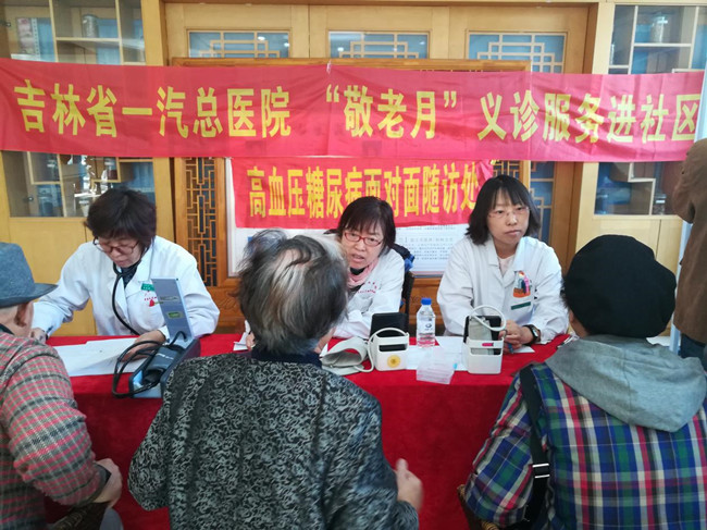 此次活动由吉林大学中日联谊医院、吉林省人民医院、吉林省前卫医院、吉林省一汽总医院、长春市中心医院、长春市中医院6家医疗机构选派心脑血管、内分泌、消化科、神经内科、中医科、老年病科等医疗专家组成义诊服务队,分别到长春市城区内的六个社区和一个养老机构为老年人及社区居民提供义诊服务。