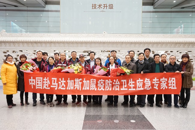 11月26日,中国赴马达加斯加鼠疫防治卫生应急第一批专家组完成任务后顺利回国。第一批专家组共9人,含6名鼠疫防控专家和3名临床专家,分别来自中国疾病预防控制中心、甘肃省疾病预防控制中心、吉林省地方病第一防治研究所和北京地坛医院。此次赴马达加斯加援助当地鼠疫防控工作专家组,以严谨的工作作风和积极有为的姿态投身鼠疫防控,践行习近平新时代中国特色社会主义思想,贡献中国智慧,彰显世界担当。