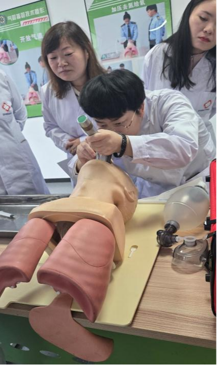 培训采用“学—练—考”相结合的模式,理论授课涵盖创伤救治,烧烫伤处置,神经系统常见急症、妇产科、儿科常见急症及处置等内容;技能操作培训主要包括单人和团队心肺复苏、电除颤、搬运、四肢固定、躯干固定、止血包扎、气管插管、突发事件紧急处置桌面推演等,并由授课老师带领学员们进行分组实操演练。培训全程学员们认真听讲,积极互动,扎实操练,急救理论和技能水平获得有效提升。培训结束后,专家组对全体学员进行理论知识与实践技能操作考核,考核合格后统一颁发培训证书。