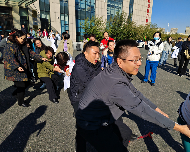 此次竞赛正是全院落实安全生产主体责任、防范化解安全风险的关键举措,竞赛共设置7个比赛项目,兼顾理论考核与实操演练、个人能力与团队协作,确保安全技能考评的全面性与实用性。其中,消防知识理论答题采用纸质试卷形式,重点检验参赛人员对安全知识的掌握程度;原地消防战斗服着装、4×30米灭火器接力赛、一人两盘水带连接、60米担架救人等实操项目,分别从装备使用、应急响应、团队配合等维度,考评参赛人员的现场操作熟练度与协同能力;跳绳项目以60秒内跳数决胜负,在竞技中提升人员身体协调性与应急反应速度;趣味拔河友谊赛则由门诊楼与行政实验楼各组建15人队伍参赛,虽不设名次奖励,却能增强团队凝聚力,营造互助协作的安全工作氛围。