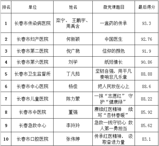 首届微型党课大赛(决赛)成绩
