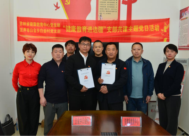 10月12日,省健康教育中心党支部与龙井市白金乡白金村党支部联合开展了“健康教育进边疆”支部共建主题党日活动。