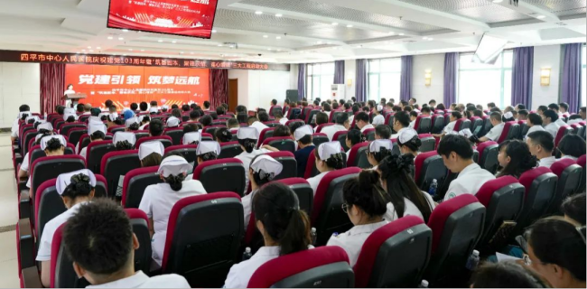 党建引领,筑梦远航。为庆祝中国共产党成立103周年,深入贯彻落实新时代党的建设总要求,持续提升基层党建规范化、标准化、精细化水平,以更有深度、精度、亮度、温度的高质量党建成果引领医院稳步发展和转型跨越。四平市中心人民医院隆重召开庆祝建党103周年暨“筑基固本、聚锋示范、连心增效”三大工程启动大会,医院党委书记郭晓平,党委副书记、院长张宇带领班子出席会议,党员代表200余人参会。