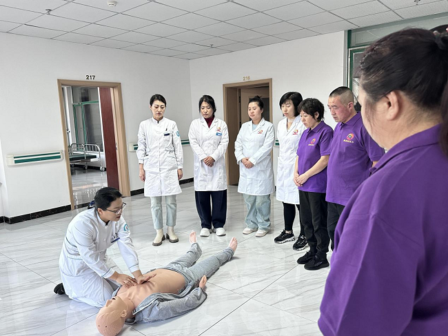 护理志愿者们为养老院工作人员进行急救技能现场培训,她们以专业的手法与深入浅出的讲解方式,详细演示、讲解心肺复苏技术与海姆立克法等急救技能,通过现场模拟演示,手把手地教导工作人员如何正确操作,让每一个动作都精准到位。活动最后,党支部党员志愿者为老人们送上了米面粮油等生活用品,饱含着四平市第一人民医院全体医务人员对老人们的深深敬意和美好祝福。